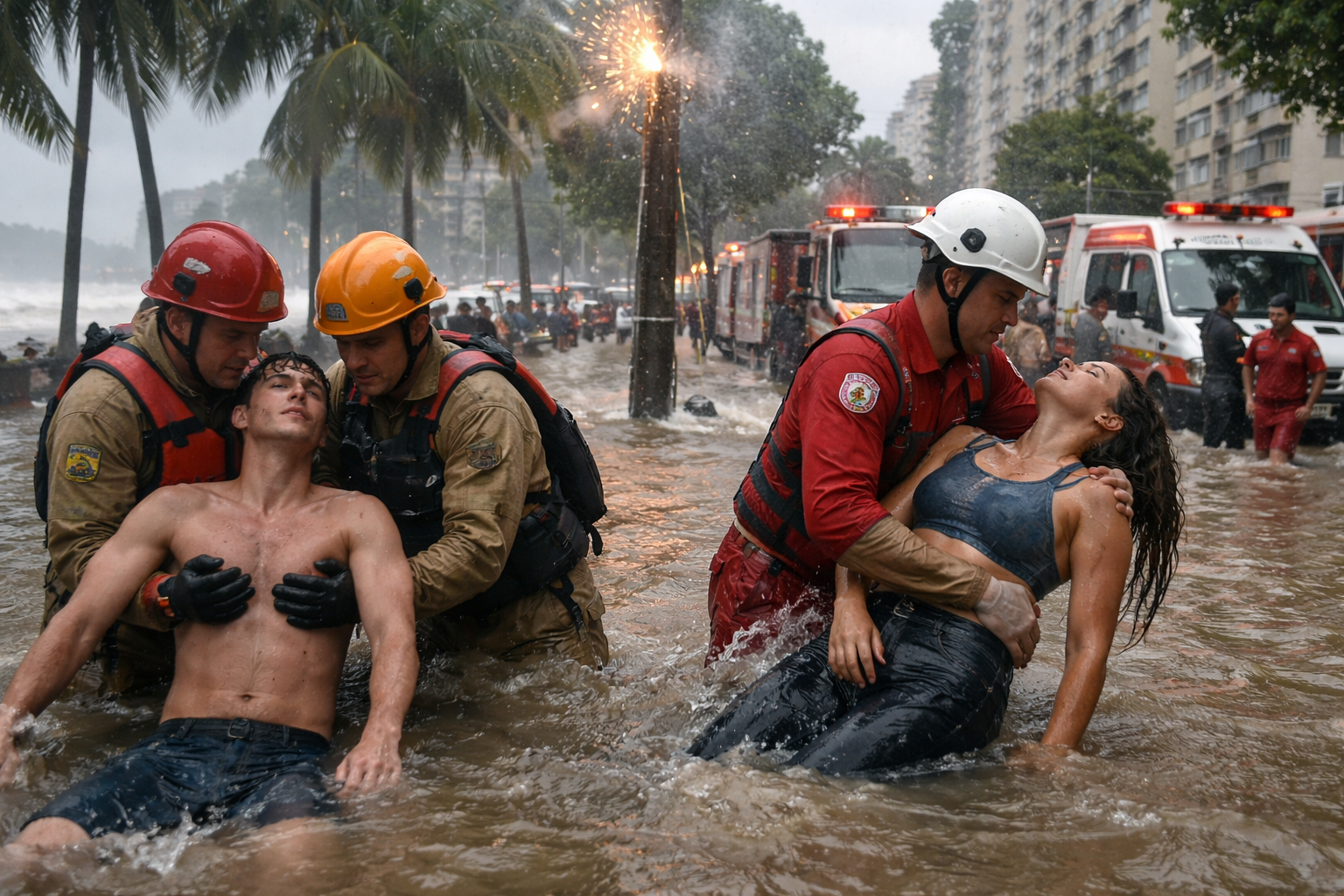 As autoridades não divulgaram a identidade das vítimas nem para qual unidade de saúde elas foram encaminhadas. Também não há informações sobre as causas da descarga elétrica no poste durante o alagamento.